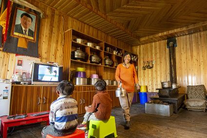 觀看圖片展的贈(zèng)科小學(xué)退休老校長(zhǎng)阿伙布老人一邊指著贈(zèng)科鄉(xiāng)安卡村的全貌圖,一邊自豪地給身邊觀展的人群說:“這是我的家鄉(xiāng),在六七十年代的時(shí)候,村里房子是沒有樓層的土木房?,F(xiàn)在,村里的人居環(huán)境有了很大改善,房子也修得很漂亮??吹郊亦l(xiāng)的變化,我非常高興。”
