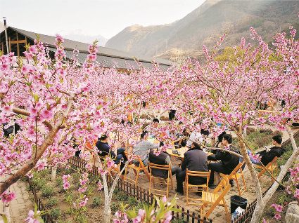 連綿起伏的群山逐漸脫下白色雪衣,漫山遍野的桃花風(fēng)光蔓延至山川,鋪就了一地的驚艷。