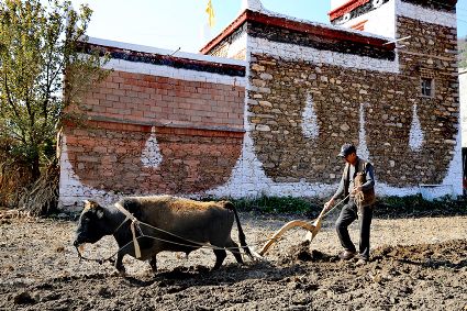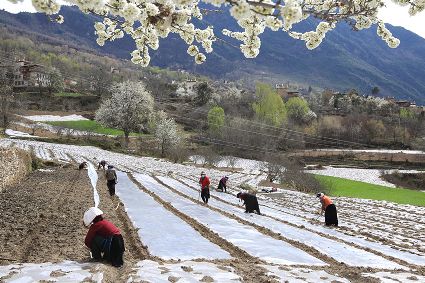 “春耕、夏耘、秋收、冬藏”是大地的“四季歌”。幾場春雨過后,大渡河流域氣溫逐漸回升。時(shí)下,穿行于我州 大渡河流域廣袤的山川田野間,到處是一派搶農(nóng)時(shí)的忙碌場景。沉寂的田野,開始熱鬧起來。農(nóng)戶們?yōu)榱艘荒甑暮檬粘?,背上背簍、帶著鋤頭、趕著耕牛,走進(jìn)阡陌縱橫的田野,鉚足“?!眲艃海?、修剪、澆水、除草,田野間好不熱鬧。一幅忙春耕、勤備耕的“春耕圖”已在甘孜大地徐徐展開。