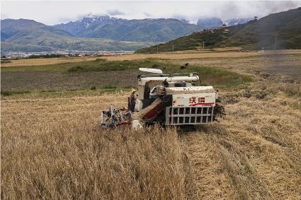 每年9月初,都是甘孜縣青稞收獲的季節(jié)。今年的秋收季已經(jīng)開(kāi)始,甘孜縣甘孜鎮(zhèn)斯俄片區(qū)的村民正忙著收割青稞。如今的雪域高原,農(nóng)業(yè)生產(chǎn)已經(jīng)基本告別人力耕作時(shí)代,實(shí)現(xiàn)了機(jī)械化耕作。今年甘孜縣的青稞長(zhǎng)勢(shì)良好,有望成為又一個(gè)豐收年。