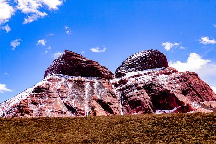 位于四川省西部雅礱江河谷的新龍紅山丹霞地貌被稱為“雅礱秘境”“地之肚臍”,該丹霞地貌正處于壯年期,整體海拔大多在4200米—5000米之間,超過5000米的山峰有10余座,高差大于800米,屬于典型的高寒型丹霞。