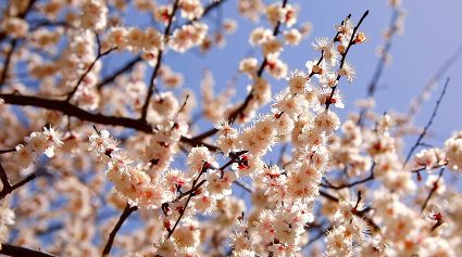 千畝桃林灼灼盛放,桃果初露尖尖,引來(lái)花雨翩躚,枝丫顫顫仿佛一幅絕美畫(huà)卷令人陶醉。