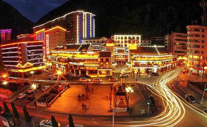 月光如水,飛珠濺玉的銀浪渲染滿天星辰,分不清人間天堂抑或是太虛幻境。閃爍的流光,如玉帶纏繞火樹銀花,明珠的光彩盡現(xiàn)川西高原情歌城。