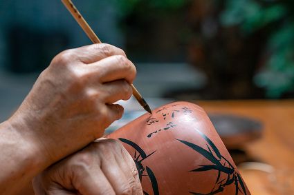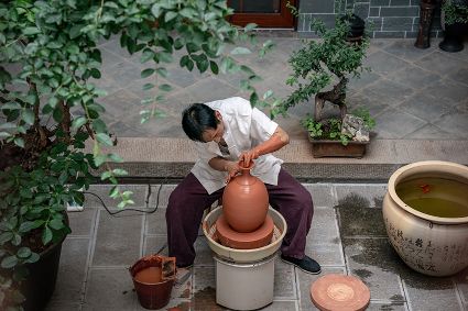 生活在云南省紅河哈尼族彝族自治州建水縣碗窯村的徐榮洪是當(dāng)?shù)匦旒腋G的第五代制陶藝人,也是非遺建水紫陶燒制技藝的傳承人。 泥料制備、拉坯造型、濕坯裝飾、雕刻填泥、高溫?zé)?、無(wú)釉磨光……要想做出精良的紫陶工藝品,每個(gè)流程都需要潛心鉆研?!爸谱骷妓嚟h(huán)環(huán)相扣,某一道工序出現(xiàn)紕漏,燒出來(lái)就是瑕疵品?!?徐榮洪拿起刻刀,對(duì)陶坯表面開(kāi)始進(jìn)行雕刻。 今年57歲的徐榮洪小時(shí)候就跟著長(zhǎng)輩上山挖陶泥,多年來(lái)堅(jiān)持鉆研建水紫陶的制作技藝。 徐榮洪介紹說(shuō),作為紫陶藝人,以陶為紙,根據(jù)器型將不同的文化與藝術(shù)形式注入其中,使其具有無(wú)限活力。非遺文化閃爍著人類智慧的光芒,也承載著人們心底的情思鄉(xiāng)愁。