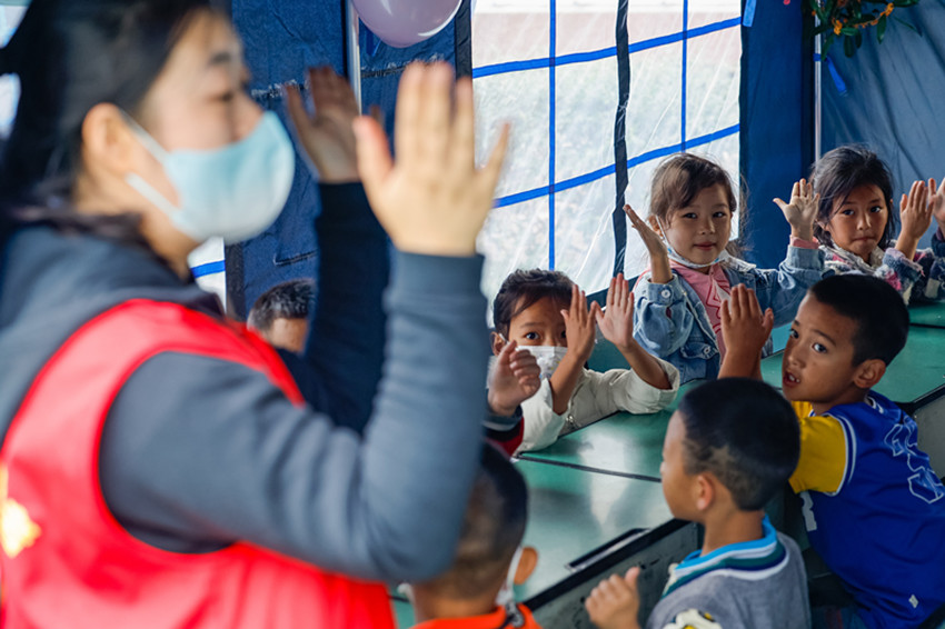 在社會(huì)各界搶險(xiǎn)救援隊(duì)伍的鼎力支援下,災(zāi)區(qū)的道路、電力、通信等逐漸恢復(fù),生活逐步走上正軌;在愛心志愿者的安撫關(guān)心下,孩子們走進(jìn)“帳篷課堂”,朗朗書聲、歡快笑聲日漸增多。