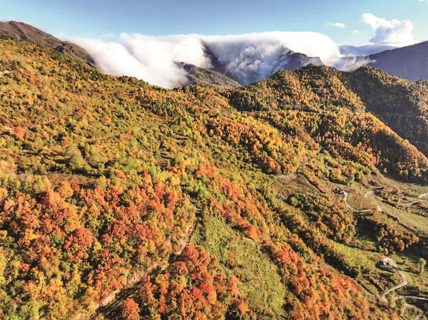 冷風(fēng)肅起,大雁南飛,銀杏樹(shù)開(kāi)始了一年中最華麗的篇章,風(fēng)兒吹過(guò),銀杏樹(shù)葉紛紛揚(yáng)揚(yáng)地,從樹(shù)上飄落下來(lái),宛如無(wú)數(shù)只金色的蝴蝶,在空中漫天飛舞?!八厣鷿狻?,滿山層林盡染,演繹著另一番亮麗。多種色彩交織在一起,如同一幅流動(dòng)的美麗畫卷,使得這個(gè)季節(jié)更有韻味。