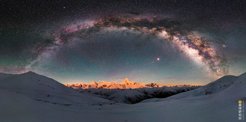 大雪山北部,海拔5884米的雅拉雪山與貢嘎遙相呼應(yīng),日落時(shí)分聳立在原野之上的雅拉被霞光籠罩如同大地的王冠;沙魯里山縱貫甘孜西部,它南北長(zhǎng)約450公里,寬約200公里是四川最寬最長(zhǎng)的山脈,它山勢(shì)平緩,置身其中有時(shí)都感覺不到山的存在,但同時(shí),它高大巍峨,盛產(chǎn)超過6000米的獨(dú)立山峰,沙魯里山脈北段有海拔6168米的雀兒山,它的中段有海拔6174米的格聶山,它的南段有三座6000米級(jí)山峰組成的稻城三座雪山,彼此距離不過5-7千米,三山合圍之中給人強(qiáng)烈的視覺震撼和心靈沖擊。動(dòng)輒直抵云霄的海拔,加上相對(duì)原始的環(huán)境,使得這里空氣潔凈度極高、光污染小,夜幕落下、銀河升起,云端之色變成一片攝人心魄的星光。