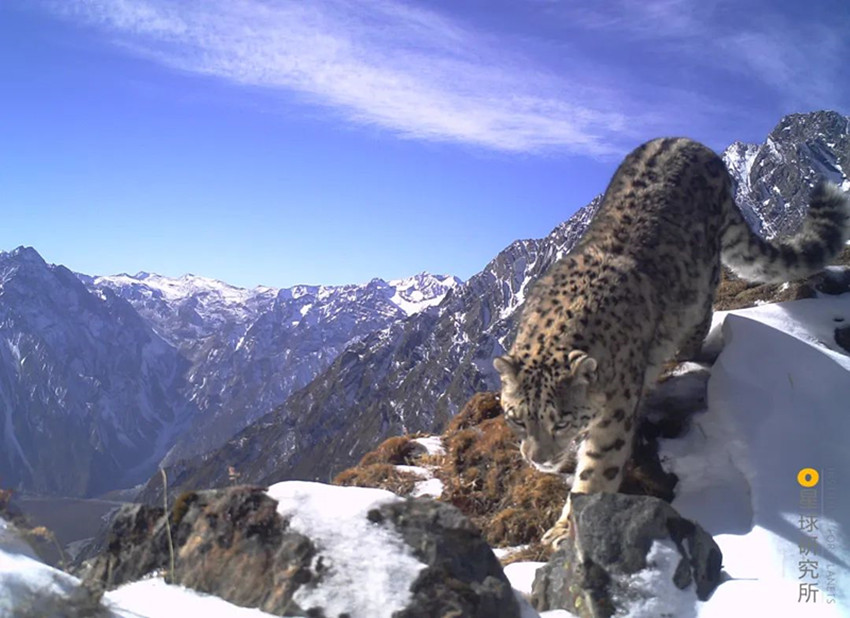 有蹄動(dòng)物能更好地適應(yīng)山地的崎嶇,巖羊一邊在陡峭的崖壁上行走、一邊懵懂地張望,飛檐走壁如履平地。高大的白唇鹿,有寬大的蹄子幫助它攀巖,它們生活在海拔3000——5000米的高山,是棲息海拔最高的鹿類。在這看似平靜的曠野之中,獵食者已經(jīng)出動(dòng),食物鏈頂端的雪豹下山巡視、藏狐頻頻回眸,眼神銳利,金雕在山間盤旋,洞察著地面的一切。