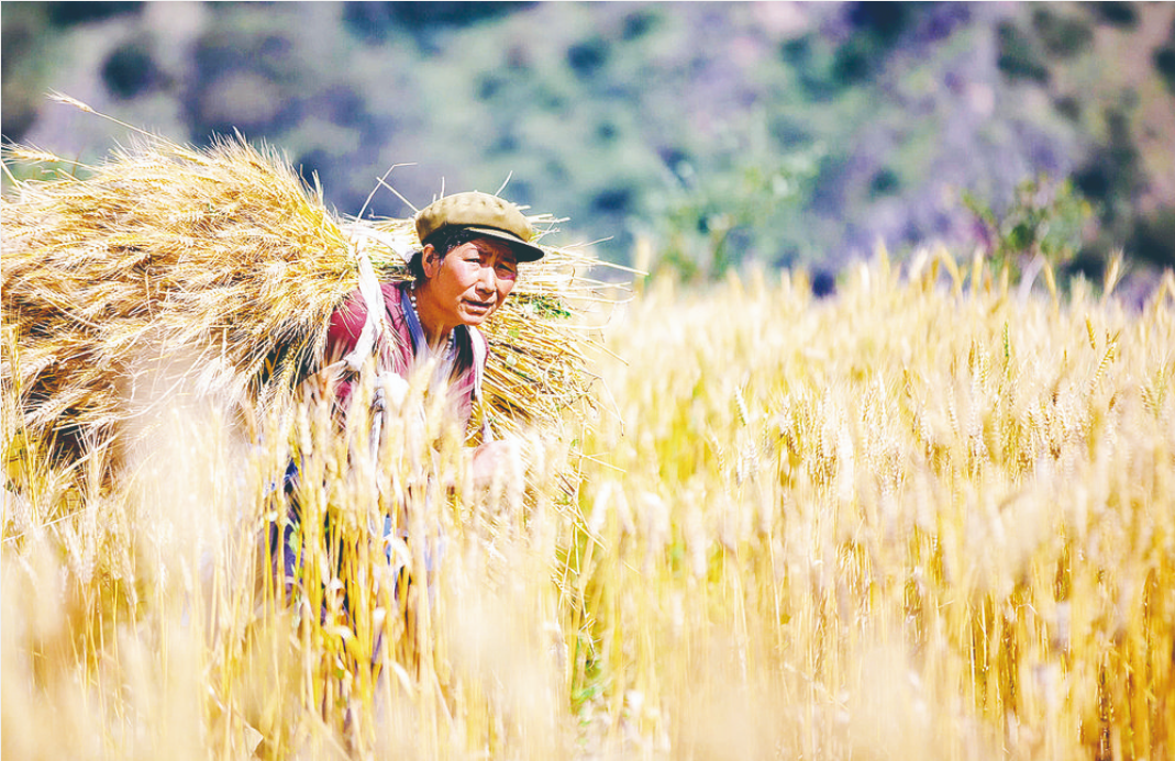 我州各地青稞、小麥陸續(xù)進入成熟期,眼下正值“雙搶”關鍵期。放眼望去,在廣袤的田野上,一片熱火朝天的繁忙景象。村民們頭頂烈日,腳踏泥土,緊張而有序地投入到“雙搶”工作中。新型農(nóng)具為“雙搶”注入強大動力,收割機在田間往來穿梭,一顆顆飽滿的麥粒從倉門傾瀉而下,源源不斷地被送上拖拉機,將成熟的小麥、青稞迅速收割歸倉,展現(xiàn)出一幅喜慶熱鬧的豐收畫卷。