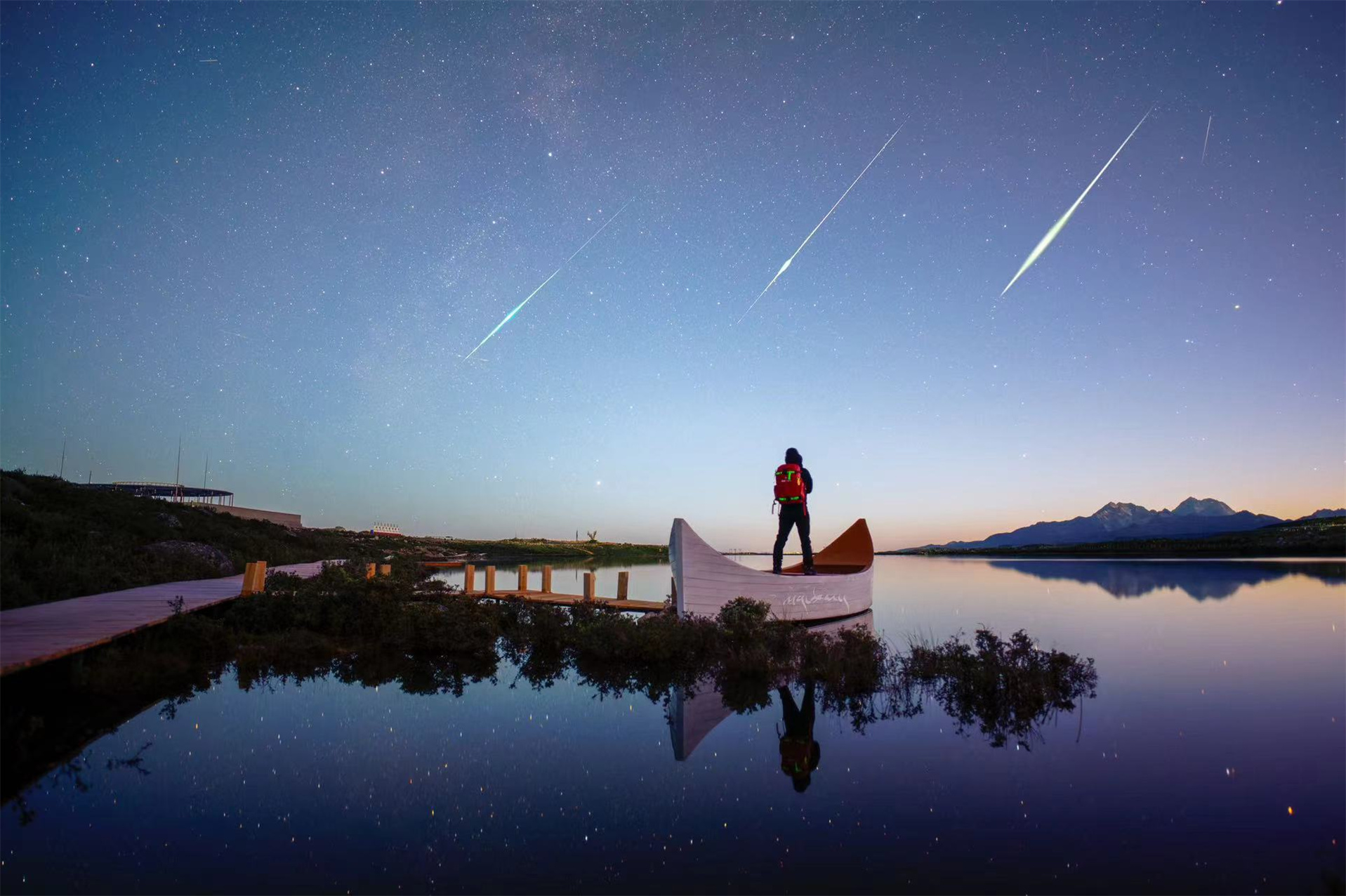 8月12日晚至13日晨,英仙座流星雨“光臨”地球、綻放夜空,吸引了眾多天文愛(ài)好者“追星”。我州不少星空攝影愛(ài)好者成功捕捉到了英仙座流星雨的群內(nèi)流星劃過(guò)天際的浪漫畫面和精彩瞬間。在康定市斯丁措,流星雨恰逢極光,更是為觀測(cè)者帶來(lái)雙重驚喜。圖為記者捕捉到英仙座流星雨與極光同框的畫面,絢爛的紅色極光扮靚夜空,讓夜色顯得格外迷人。
