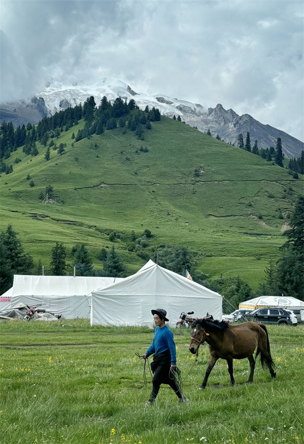 不管然日卡村還是則巴村,村民的勤勞善良也一樣讓人印象深刻。然日卡村的藏族姑娘丁真拉珍剛過18歲,卻經(jīng)常像個將軍去山上放牧和指揮100多頭牦牛,如果時間允許,她還去挖蟲草和松茸,但同時又在村里當旅游向導,騎上摩托、牽上馬匹帶游客四處參觀,每天忙得不亦樂乎;同樣是然日卡村的小伙澤仁剛娶了翁姆姑娘,他們從傳統(tǒng)的放牧中抽身出來,與村里許多年輕人一樣,一心一意打造鄉(xiāng)村民宿,用勤勞的雙手走上了一條嶄新的致富路;而則巴村的帥小伙甲他,今年也在村子里建起了屬于他們一家的“奔然甲他”民宿,奔然是村前一座小山的名字,甲他相信他們的日子一定如山一般堅實越過越好。