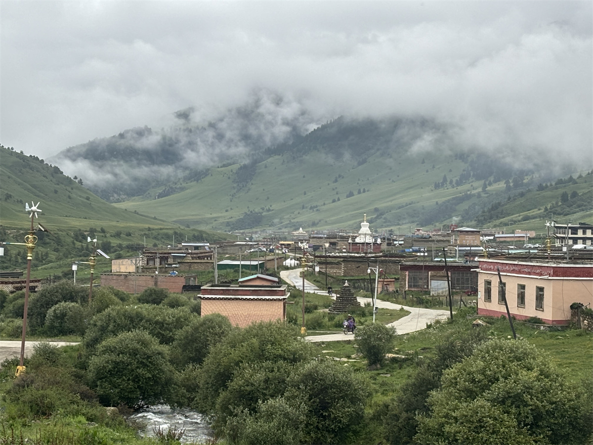 然日卡村是格聶山下一個典型的藏族村莊,因自然景觀優(yōu)美而聞名。站在村前觀景平臺上,能看到以雄奇險峻而著稱的格聶神山。格聶神山位于理塘縣西南部,是四川省甘孜藏族自治州理塘縣境內的著名山脈,?它不僅是四川第三高峰,?而且因其獨特的自然景觀和深厚的文化背景,?吸引了眾多旅行者和朝圣者。?格聶神山的地質構造和自然景觀極為豐富,?包括冰川、?雪峰、?草原、?沼澤、?瀑布等,?展現(xiàn)了大自然的鬼斧神工和生命的多樣性。?