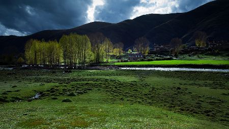 湛藍(lán)的天空下,雄鷹在盤旋,牛羊在安詳?shù)芈匠圆?,靜靜的小河在山邊蜿蜒流淌,充滿綠意的白楊樹在風(fēng)中搖曳,藏式民居不時(shí)升起縷縷炊煙,寂靜、空曠的原野深處偶爾會傳來幾聲狗叫高原的陽光又賦予這幅風(fēng)景畫凝重的色彩這樣的畫面叫人心醉,讓人留戀忘返從折多山腳下至新都橋鎮(zhèn),再至塔公草原,處處都是入畫的美景,不愧稱為“攝影家的天堂”。