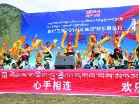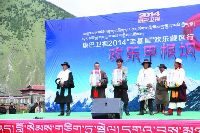 上午十點(diǎn)半,隨著一陣歡快的音樂聲,康巴衛(wèi)視2014年“走基層”歡樂藏區(qū)行活動在甲根壩鄉(xiāng)木雅村正式拉開序幕。