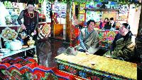2000年春節(jié)后,越來越多的游客開始來到這里觀光旅游,紛紛住進了他的“藏家”。這一年開始,他的收入破萬了。鄧珠說,他家在4年內(nèi)就告別了“貧困戶”的稱號,現(xiàn)在他的家庭收入有90%來自旅游接待。在他的帶動下,村民們也開始將自家的房子裝修成了旅游接待房,越來越多的游客住進了牧民們開辦的藏家樂中。