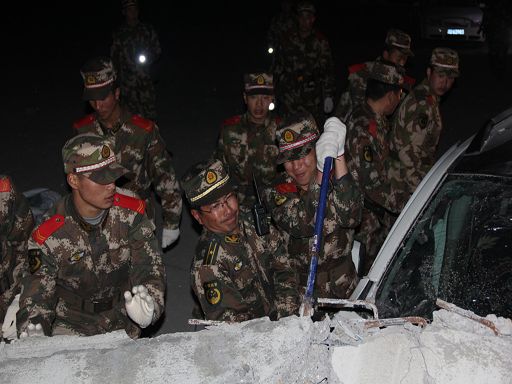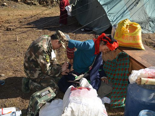 地震發(fā)生僅1小時(shí),總隊(duì)政委金德成即帶前指,從雅江翻越海拔4400余米的高爾寺山向塔公方向開進(jìn)。與此同時(shí),應(yīng)急救援分隊(duì)分別從康定星夜兼程,疾速奔赴重災(zāi)區(qū)。21時(shí)03分,前指抵達(dá)震中塔公鎮(zhèn)奪讓一村和受災(zāi)嚴(yán)重的木雅祖慶小學(xué),深入村寨了解受災(zāi)情況,派出38名應(yīng)急救援官兵,對(duì)房屋受損嚴(yán)重的7戶災(zāi)民先期展開救援,搶挖出被倒塌墻體壓埋的車輛2臺(tái)。并及時(shí)來到康定地震前線指揮部,請(qǐng)領(lǐng)任務(wù)。連夜為木雅祖慶小學(xué)師生搬運(yùn)棉被、搭建帳篷,幫助受災(zāi)師生順利度過震后第一個(gè)夜晚。