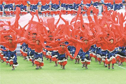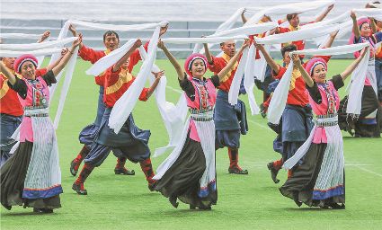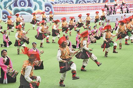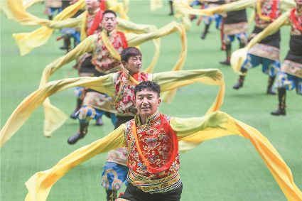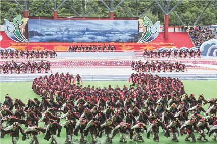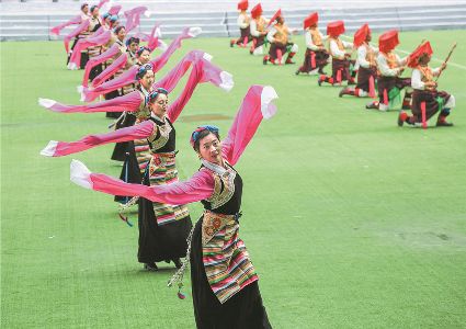 8月8日上午,康定北門(mén)體育場(chǎng)內(nèi)歌舞升平、彩旗飄揚(yáng),第九屆康巴藝術(shù)節(jié)開(kāi)幕式文藝演出在此進(jìn)行最后一次帶妝彩排。本次彩排也讓我們對(duì)開(kāi)幕式文藝演出充滿(mǎn)了期待。