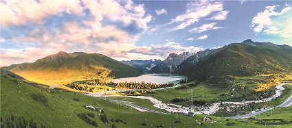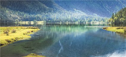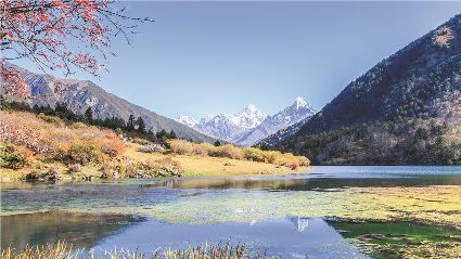 一天之中,數(shù)清晨和傍晚的海子最美,晨光中,湖水猶如鏡面般倒映著周圍的景物,天色漸漸亮了,周圍的景物也在 “鏡子”中漸漸清晰起來,特別是那些雪山下的海子,當太陽給雪山鍍上一層玫瑰金,倒影更美。傍晚,落日的余暉灑在海子和它周圍的景物上,又是另一種美,天上再有幾縷晚霞,更絕。四季里,就要看秋天的海子,因為這時海子周圍的景色是最美的,紅葉、黃葉、綠葉相間,便襯托得海子更美。