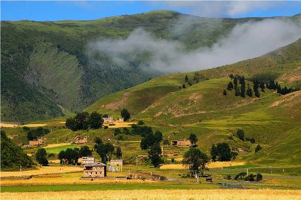 在金秋季節(jié),當嬌滴滴的“水月江南”還在苦苦盼望燥熱早日離去時,而明媚的秋色已經在粗獷豪邁的甘孜大地上揮毫潑墨。