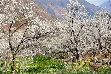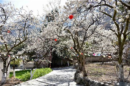 陽春三月,瀘定陽光明媚,到處生機(jī)盎然。大渡河畔的杵坭、田壩等地櫻桃花在田間競相綻放,一團(tuán)團(tuán),一簇簇,一朵朵潔白的花兒緊緊簇?fù)碇?,綴滿枝頭。一陣陣微風(fēng)吹來,櫻桃花隨著枝條在風(fēng)中輕盈地?fù)u曳。