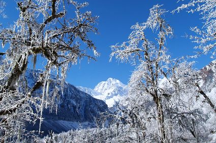 冬季的海螺溝是冬雪仙境、人間至美!海螺溝位于貢嘎雪峰腳下,是“蜀山之王”貢嘎山的門(mén)戶,以低海拔現(xiàn)代冰川著稱于世。站在雪后的海螺溝遙望貢嘎神峰,猶如一道冰凝玉砌的天庭界碑,氣勢(shì)雄渾直指九霄,雪霧攜祥云共舞峰巔,絕世獨(dú)立的山王風(fēng)范在冰雪仙靈的輔佐下,更顯帝王之氣。