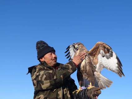“古時候鷹做為人類的朋友,幫助主人捕野兔捉野雞?!庇?xùn)鷹人說。