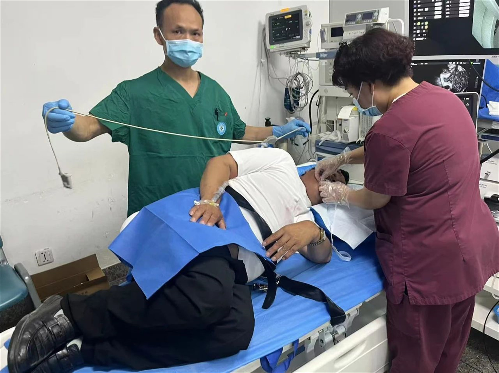 圖為醫(yī)務人員正在為患者檢查。