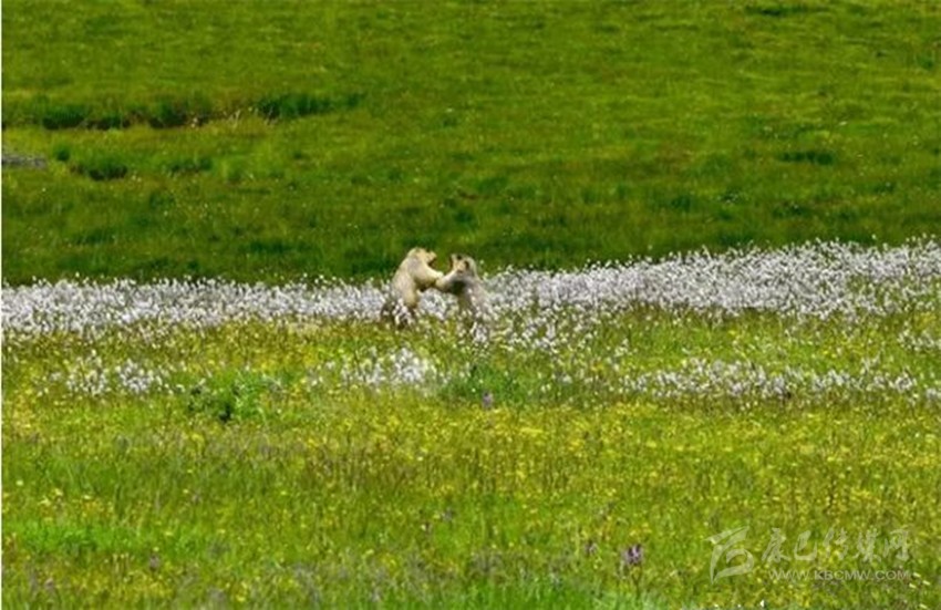 藍(lán)天白云、雪峰皚皚,冰川閃爍、青山融融、綠草茵茵、波光粼粼。湖岸珍禽異獸出沒(méi),湖中野鴨成群,魚(yú)兒游弋。山花爛漫,爭(zhēng)芳斗艷,真可謂世間仙境。