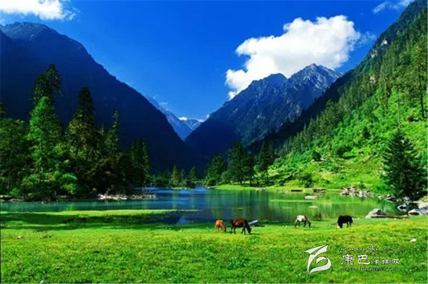 藍寶石般的高原湖泊、銀鏈般的溪流迂回盤旋,時常有馬兒在湖邊漫步。