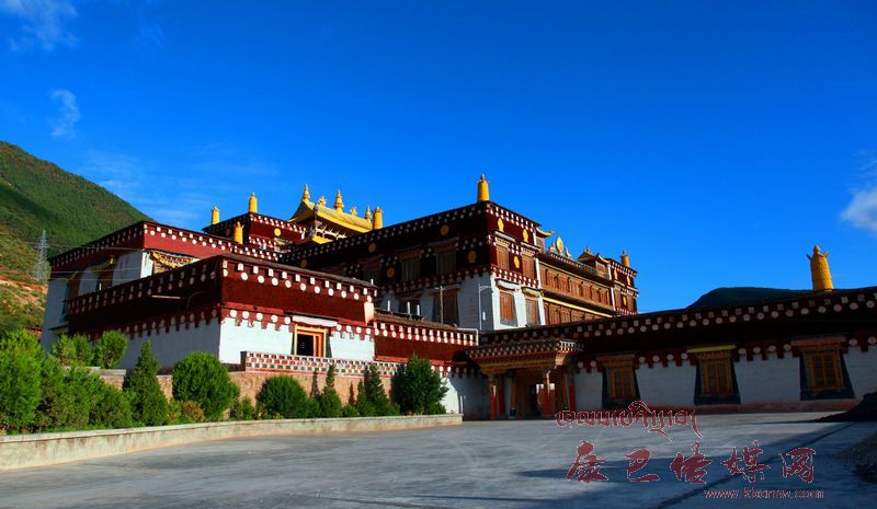 老寺廟經(jīng)歷了無數(shù)滄桑變故,已是滿目瘡痍,1996年,在國家的支持下遷址重建。新寺坐落在雄偉的巴姆山腰,從這里可以俯瞰縣城全景。主殿為四層錯(cuò)落式建筑,占地超過2000平方米,規(guī)模宏大,裝修精美,尤以“建筑藝術(shù),雕塑藝術(shù),彩繪藝術(shù)“三絕著稱”。