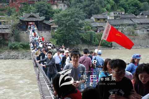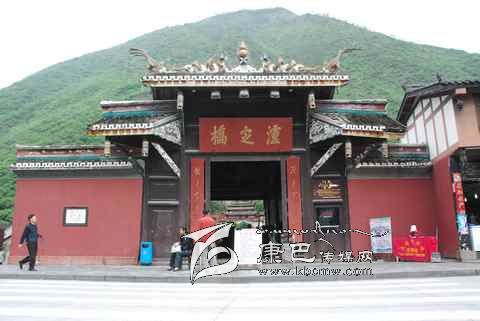瀘定橋始建于清康熙44年 (1705年),次年五月竣工,康熙御筆題名“瀘定橋”。橋身共由13根鐵鏈組成,其中底鏈九根,扶手四根。橋東西兩端各有橋臺一座,西端觀音閣下有康熙題寫之《瀘定橋》石碑,橋東有《御制瀘定橋碑記》,瀘定橋是大渡河上第一座穩(wěn)固的大鐵索橋。1935年中國工農(nóng)紅軍晝夜行軍240里,英勇飛奪瀘定橋,打開了北上抗日的通道,“十三根鐵鏈托起了一個共和國”,毛澤東同志為此寫下了“大渡橋橫鐵索寒”的壯麗詩句,瀘定橋自此名揚四海,成為中國紅色第一橋。為紀念紅軍飛奪瀘定橋這一壯舉和奇跡,于1985年在沙壩建立了“紅軍飛奪瀘定橋紀念館”和紀念碑。紅軍飛奪瀘定橋紀念碑由鄧小平同志題寫碑名,聶榮臻元帥題寫碑文。紅軍飛奪瀘定橋紀念館收集了紅軍飛奪瀘定橋時用過的門板、槍、炮、紅軍的旗幟、文件箱、信件證明、標語、戰(zhàn)報、手雷、馬刀等珍貴文物110余件以及177幅歷史照片。瀘定橋是全國首批重點文物保護單位,是國家重點培育的 “紅色旅游區(qū)”、重點組織規(guī)劃的 “紅色旅游精品線路”和重點建設(shè)的 “紅色旅游經(jīng)典景區(qū)”。