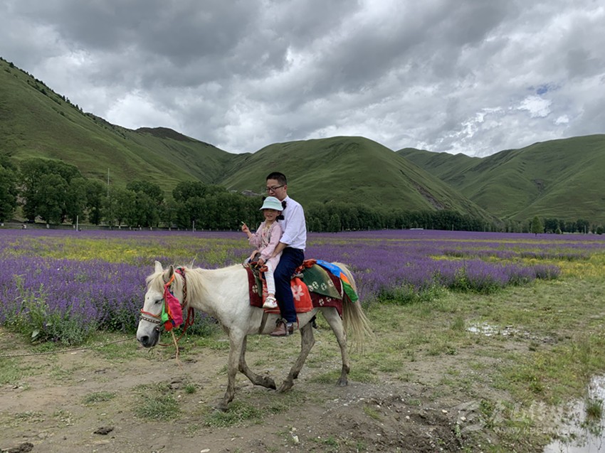 是時(shí),微風(fēng)乍起,黛山環(huán)抱下的花海漾蕩著瀲滟的紫光,裹挾著無邊的浪漫和淡淡的芳香,向棧道上的游人涌來,彌漫到腳邊、四溢到身旁——踏訪這個(gè)藏在川西高原的“普羅旺斯”詩境實(shí)地,一幅美不勝收的“夏日高原送爽圖”令人心迷神醉。