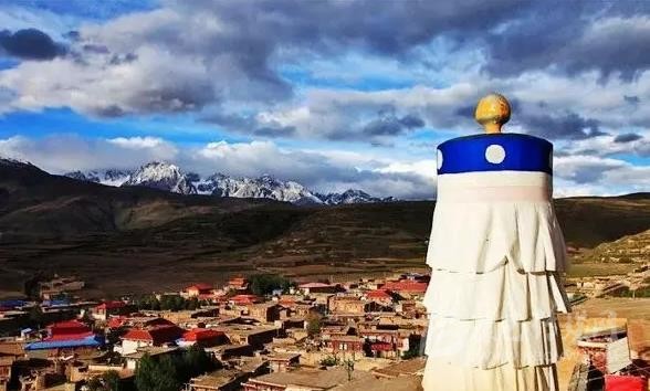 沿著甘孜縣城門向東南一望,一座37米高的大寶塔便呈現在你的眼前,寶塔其底三層寶座均北京天壇祈年殿座底比列大小而建。雄偉壯觀。