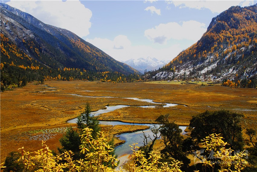 第一場秋雨開始的時(shí)候,高山上便開始飄起了雪花,到了九月左右,圣潔的雪山便開始層層包裹雪白的衣衫,為來年的春夏積攢滋養(yǎng)的泉水。秋天沿著山峰從高處漸次向下,一些低矮的灌木也迫不及待的穿上絢爛的秋裝。陣陣秋風(fēng)吹過,色彩自然越加濃烈。