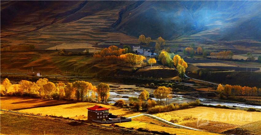來甘孜賞秋色,怎么能不先做好攻略設(shè)計(jì)?其實(shí)從八月起,秋天的腳步就已經(jīng)來臨,它最先光臨高原的青稞田地,時(shí)間每過去一天,秋日的艷陽將雨季趕得越遠(yuǎn),湛藍(lán)的天空下翻滾起來金黃色的麥浪,一直綿延到雪山腳下。深秋炫目過于不食人間煙火,其實(shí)我更喜歡田野里的秋天,有家的溫暖味道。炊煙從藏房民居的屋頂升起,風(fēng)吹麥浪的聲音也壓不過孩子們?cè)谔镆暗臍g笑,開始準(zhǔn)備秋收了,又是一次鄉(xiāng)鄰們的聚會(huì),他們揮舞著鐮刀,在歌聲和笑聲中灑下對(duì)大地和生活的感恩熱愛。