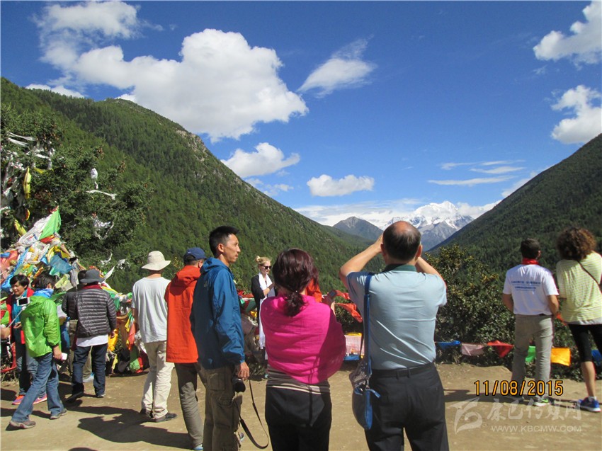 游客從遠(yuǎn)方領(lǐng)略亞拉雪山獨特風(fēng)采。