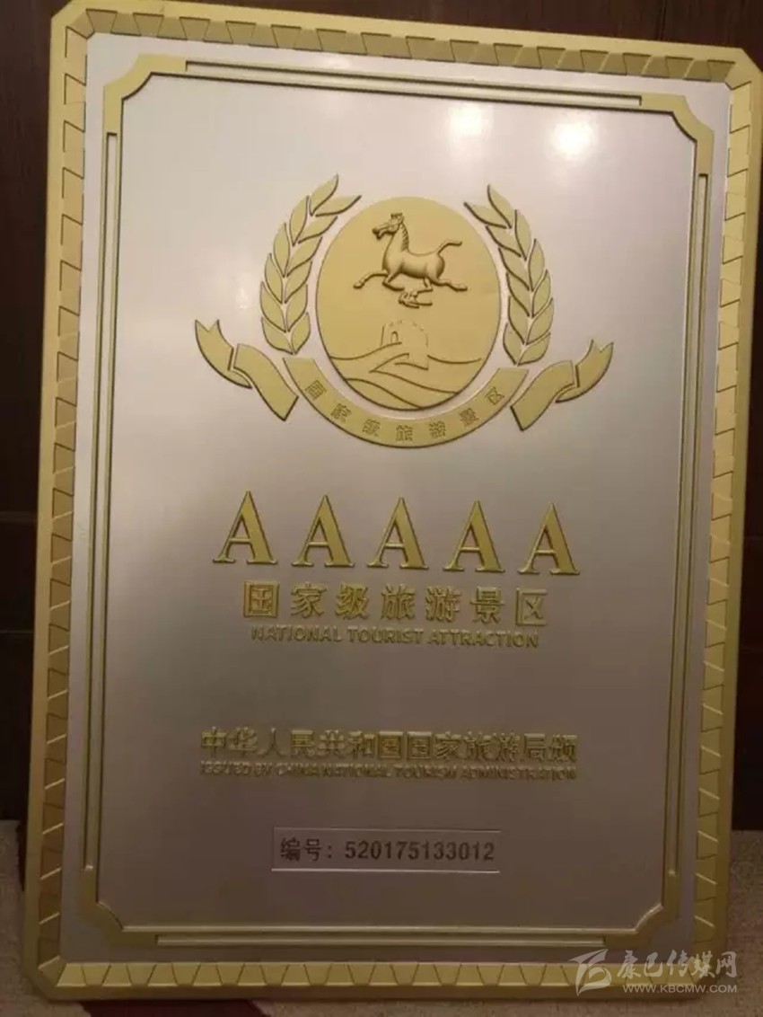 國家旅游局頒發(fā)給海螺溝景區(qū)的國家5A景區(qū)牌。