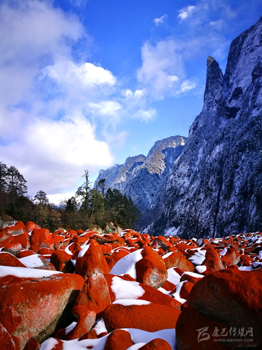 位于貢嘎山腳下綿延20多公里的紅石灘,更是與雪凇形成了強(qiáng)烈的視覺(jué)對(duì)比。燕子溝紅石歷經(jīng)冰川融水的沖擊,從遠(yuǎn)處望去,愈顯鮮艷和壯麗。據(jù)燕子溝風(fēng)景區(qū)工作人員介紹,紅石只能在特定的環(huán)境中生存,它對(duì)生存環(huán)境如海拔高度、溫度、濕度、空氣純凈度及日照條件等要求極為苛刻。燕子溝景區(qū)紅石灘自海拔2100米以上,一直到貢嘎山主峰腳下,綿延近20公里,好似一張紅地毯從天而降!就規(guī)模、密度以及顏色鮮艷度來(lái)說(shuō),幾乎無(wú)人能及,曾有專(zhuān)家稱(chēng)燕子溝景區(qū)紅石灘為世界紅石公園。