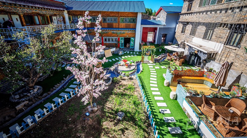 曾經(jīng)的倉庫變成了咖啡廳,關(guān)牛的地方變成了餐廳,土司房變成了溫泉套間,四合院變成了小橋流水,雖然有些改變,但留給客人的依舊是一個(gè)傳統(tǒng)藏式四合院?!拔ㄒ桓淖兊闹皇嵌嗔诵┬氯诵率聛韥硗谶@里從你的全世界路過……”石雅琴借用張嘉佳的《從你的全世界路過》的話語,道出了她對(duì)“親愛的宅宅”的“定性”。