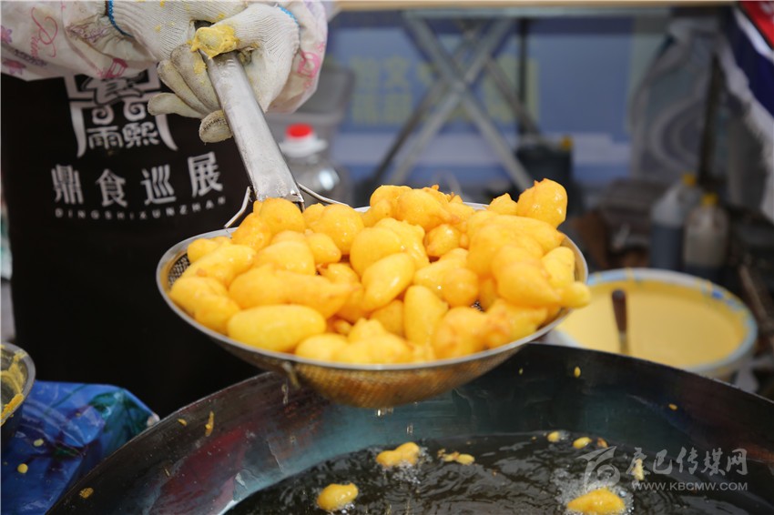 要說美食節(jié)最炫酷的店鋪,那非“印度飛餅”莫屬了。記者穿過層層圍觀的人群,點(diǎn)了一份菠蘿飛餅。只見廚師將捏好的面團(tuán)在案板上揉了幾下,便捏緊面餅一端按順時(shí)針方向轉(zhuǎn)動(dòng),手里的面餅越轉(zhuǎn)越大,越轉(zhuǎn)越薄,幾近透明,接著就是放餡料,稍做煎炸,切割裝盤,短短一分鐘內(nèi),一氣呵成。記者接過盤,咬下一口,“喀嚓”一聲,再一口就吃到了菠蘿的清香,外層淺黃松脆,內(nèi)層綿軟白皙,略帶甜味,好一個(gè)外脆內(nèi)嫩??!嚼起來層次豐富,一軟一脆,口感對(duì)比強(qiáng)烈,嚼過之后,齒頰留芳。當(dāng)脆餅撞上菠蘿的清香,就像在夏天突然掉進(jìn)一個(gè)水池,清爽又驚喜?!案杏X就是一件的藝術(shù)品啊!”如此的驚嘆聲從人群中迸發(fā)出來。