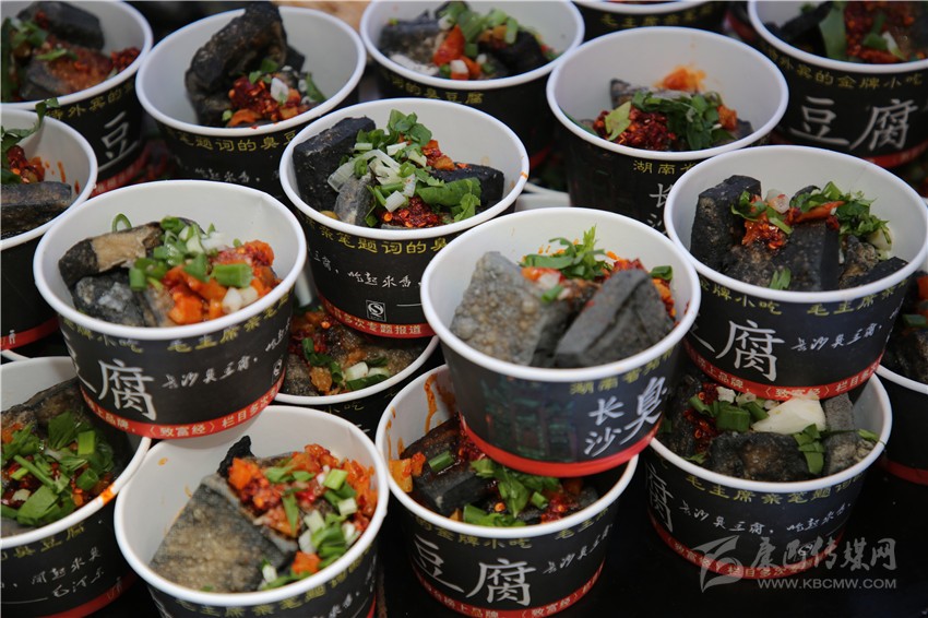 “長沙臭豆腐,毛主席親自點(diǎn)評(píng)的長沙臭豆腐……”一陣陣吆喝聲從遠(yuǎn)處傳來,記者心想,臭豆腐,大概還是算長沙的味道最正宗吧。還沒走近,一陣逗人味蕾的氣味便傳進(jìn)了記者的鼻子,記者的口水再也包不住了,便徑直跑向臭豆腐售賣點(diǎn),一個(gè)個(gè)臭豆腐堆積如山,正在等待裝盤澆汁。周圍也圍滿了想要一嘗滋味的食客。