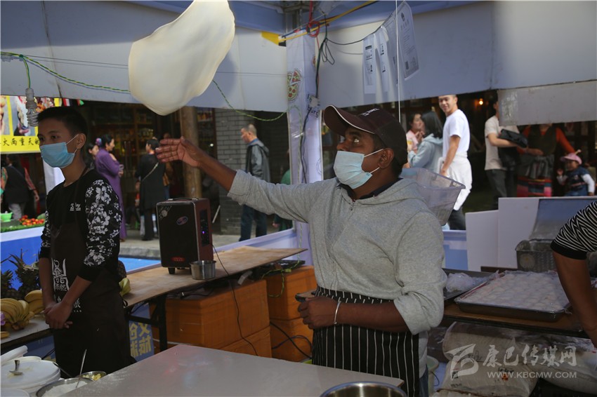 幾十頂帳篷擠滿了幾百米長的街道,帳篷內(nèi)的攤位擺滿了琳瑯滿目的特色美食,來自各國各地的特色小吃匯聚在此,散發(fā)出的香味互相交融。每一個(gè)攤位面前擠滿了食客,都在迫不及待地想品嘗美味,攤位上的每一位商家都在熱情的招呼著食客們。