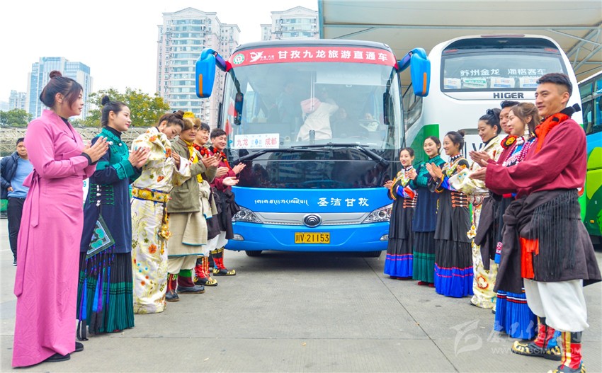 景區(qū)直通車授牌儀式和自駕游車隊(duì)授牌儀式也是本次推介會(huì)的亮點(diǎn)。兩項(xiàng)儀式旨在進(jìn)一步方便廣大游客到九龍旅游,并開啟成都直通九龍旅游及運(yùn)輸融合發(fā)展的歷史征程?,F(xiàn)場(chǎng),貼有“穿越藏彝走廊,體驗(yàn)民俗風(fēng)情”和“甘孜九龍旅游直通車”車標(biāo)的汽車引得不少人注目,有的還當(dāng)即向工作人員咨詢票價(jià)、路線。