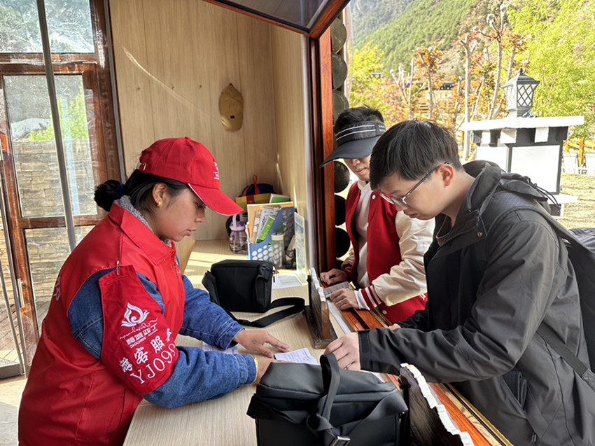 “我們?yōu)橛慰吞峁┞糜巫稍?、線路指引、文明旅游勸導(dǎo)、發(fā)放宣傳折頁等服務(wù),同時(shí)還幫助游客在手機(jī)App、互聯(lián)網(wǎng)預(yù)訂酒店,規(guī)劃旅游線路,寄存包裹等,讓游客感受到亞丁景區(qū)是有溫度、有人情味的旅游目的地?!薄拔逡弧逼陂g稻城亞丁景區(qū)志愿者四郎曲初告訴記者。