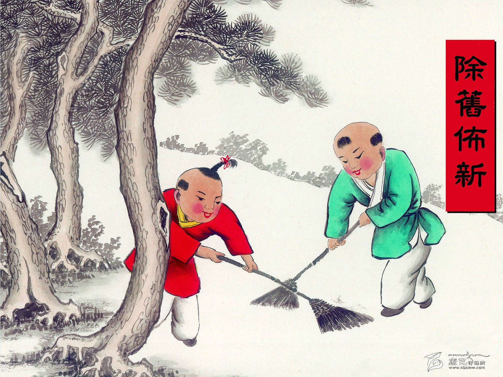 舉行過灶祭后,便正式地開始做迎接過年的準(zhǔn)備。每年從農(nóng)歷臘月二十三日起到除夕止,我國民間把這段時間叫做“迎春日”,也叫“掃塵日”。掃塵就是年終大掃除,北方稱“掃房”,南方叫“撣塵”。在春節(jié)前掃塵,是我國人民素有的傳統(tǒng)習(xí)慣。每逢春節(jié)來臨,家家戶戶都要打掃環(huán)境,清洗各種器具,拆洗被褥窗簾,灑掃六閭庭院,撣拂塵垢蛛網(wǎng),疏浚明渠暗溝。大江南北,到處洋溢著歡歡喜喜搞衛(wèi)生、干干凈凈迎新春的氣氛。