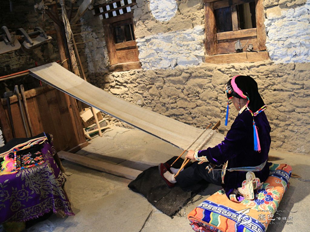 穿過古樸的大門,步入館中,映入眼簾的是古老的民間紡織技藝。一位藏族老阿媽端坐在古董般的織布機(jī)前,聚精會(huì)神地編織布匹,見到游人微笑回應(yīng),并未停下她手上的工作。年逾60的擁天秀,從十幾歲便學(xué)習(xí)織布,此間從未間斷。隨著紡織機(jī)逐漸被淘汰,擁天秀已成為傳承這門古老技藝的“活化石”。非遺展示館開館時(shí),擁天秀主動(dòng)表示,愿在此地免費(fèi)為游客展示丹巴紡織技藝。 “我喜歡丹巴刺繡和紡織工藝,平時(shí)在家里也會(huì)做,現(xiàn)在眼睛不很好,所以刺繡沒有辦法做了。游客們很喜歡在這里看我織布,他們有什么問題,我都會(huì)給他們講解。”古老的嘉絨紡織技術(shù),通過擁天秀的雙手,漸漸被人們熟知,無數(shù)張游人與她的合影也被傳至網(wǎng)絡(luò)。經(jīng)她現(xiàn)場(chǎng)紡織,價(jià)值600元一匹的純手工布銷量也節(jié)節(jié)攀升,擁天秀研習(xí)多年的手工活在展示館中終于有了“用武之地”。