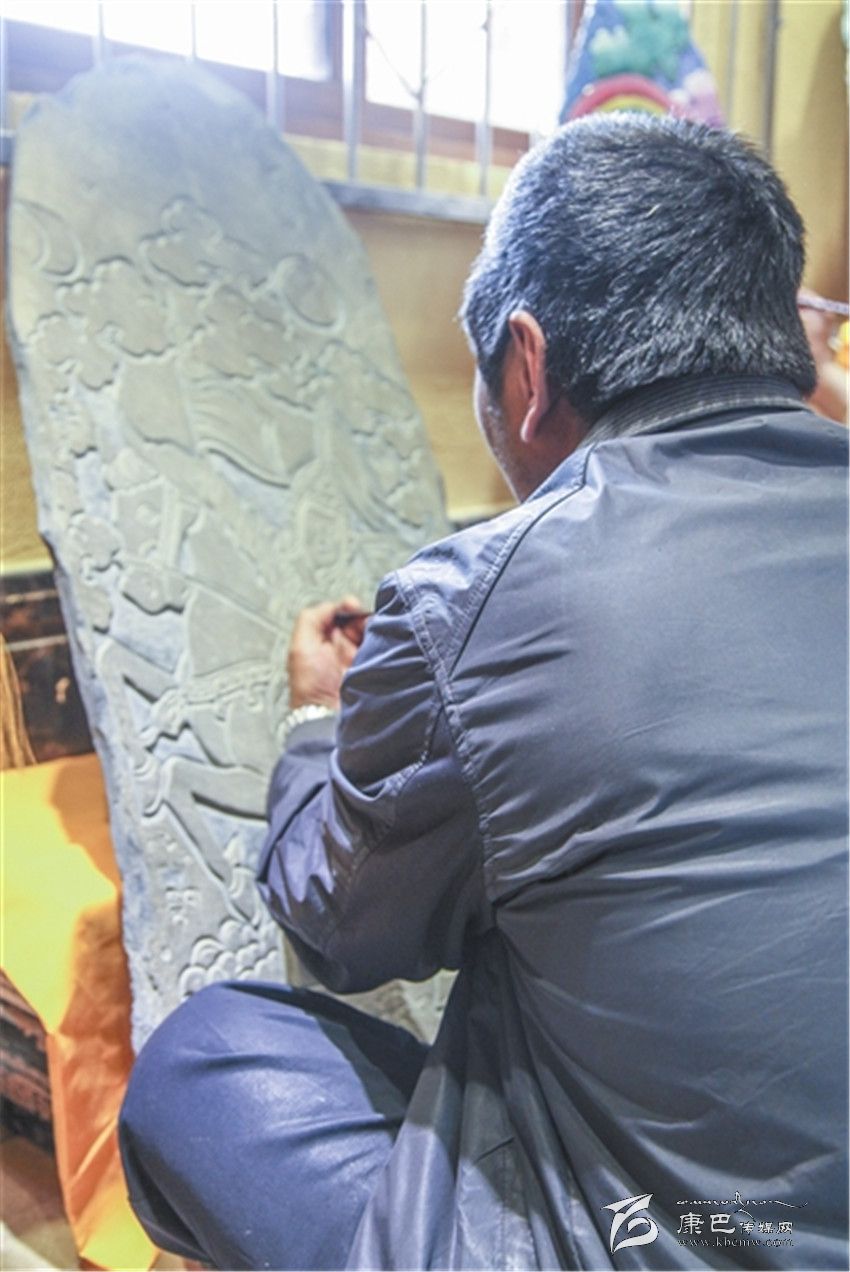 所彭告訴記者,剛開始學(xué)習(xí)石刻技藝時(shí),就是刻一些“六字真言”之類的作品。經(jīng)歷了五、六年的磨礪后,就開始在土登老人的指點(diǎn)下,刻一些簡(jiǎn)單的佛像作品。土登老人辭世后,所彭便擔(dān)負(fù)起傳承老人技藝的重任。從參軍再到退伍,直到今天,彩繪石刻仍然是所彭的最愛。他說(shuō),雖然自己不是非遺傳承人,但這并不重要。重要的是,他喜歡這門技藝,也樂意為格薩爾彩繪石刻傳承做些力所能及的事情。所彭說(shuō),他最遺憾的是自己的孩子中沒有一個(gè)人學(xué)習(xí)石刻技藝。但他堅(jiān)信,經(jīng)過發(fā)掘和保護(hù),會(huì)有越來(lái)越多的人行走在格薩爾彩繪石刻的傳承路上。