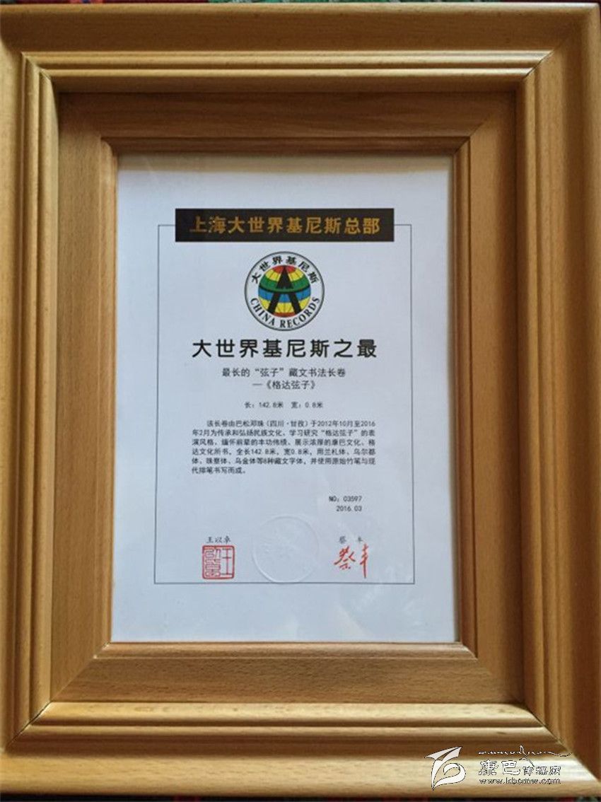 我州藏文書法家、省級藏文書法傳承人、上?;崴辜o(jì)錄創(chuàng)造者巴松鄧珠歷時三年創(chuàng)作完成了《格達(dá)弦子詞》藏文書法長卷。日前,《格達(dá)弦子詞》成功申報(bào)上海大世界基尼斯最長的“弦子”藏文書法長卷。5月6日至12日“圣潔甘孜·走進(jìn)上海”系列展在上海展覽中心西二館亮相。