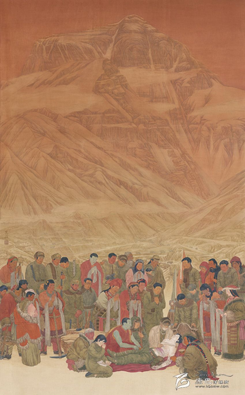 劉忠俊在繼承藏族傳統(tǒng)文化和唐卡審美的基礎上,歷時一年半,創(chuàng)作了工筆畫《川藏公路》。該作品以史詩般恢宏的氣度,謳歌了當年18軍為維護祖國統(tǒng)一、建設美好藏區(qū)、修筑川藏公路敢于犧牲和勇于奉獻的精神。作品通過靜穆質樸的美,彰顯出中華民族自強不息、百折不撓的精神。