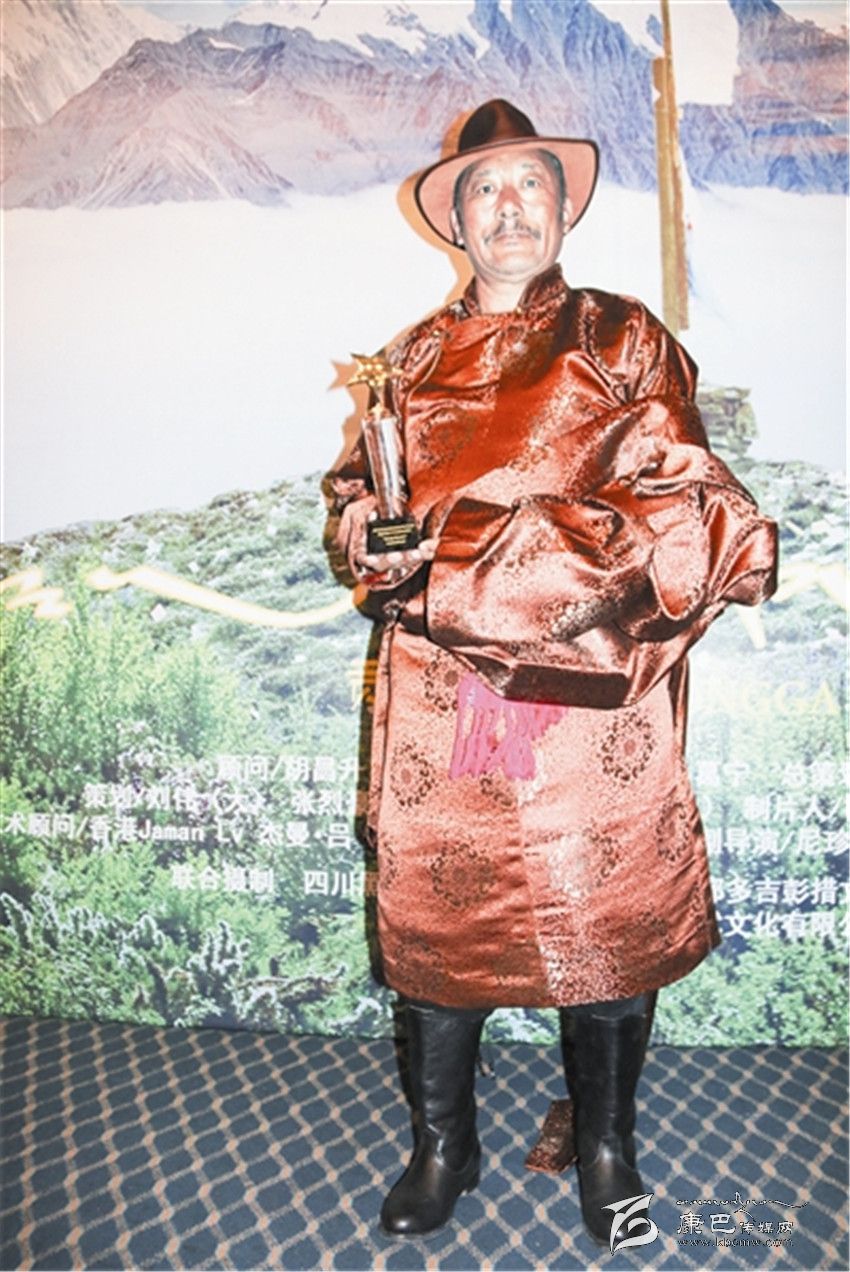 電影男一號(hào),曾獲得第35屆“金馬影帝”獎(jiǎng)的演員洛桑群培這幾天很是忙碌,正在拍攝其他電影的他,為了參加電影《貢嘎日噢》的首映式,還專(zhuān)門(mén)取消了電影拍攝檔期。說(shuō)起接拍電影《貢嘎日噢》,洛桑群培很是感嘆,他說(shuō):“這是一種緣分,是我和導(dǎo)演,和甘孜州的一種緣分。一次在和朋友的飯局上認(rèn)識(shí)了導(dǎo)演,他當(dāng)時(shí)拍著桌子說(shuō),他找了一年多,終于找到了電影的‘原型’,就這樣我接拍了這部電影。”出演這部電影,洛桑群培是本色出演,實(shí)實(shí)在在的用心演繹著“格勒”,他通過(guò)人物照片、劇情、劇景感受著“格勒”。能夠通過(guò)這部電影獲得美國(guó)第13屆世界民族電影節(jié)“最佳男演員”,洛桑群培表示很榮幸,也很自豪。